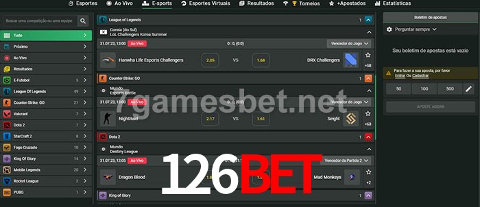 O 126bet oferece uma grande seleção de opções de apostas em e-sports com probabilidades competitivas